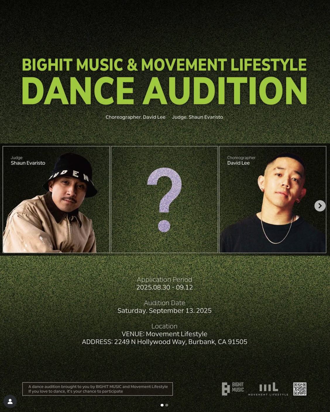 이번 오디션에서는 David Lee에게 직접 안무를 배우고, 단순히 지원만 해도 Shaun Evaristo와 BIGHIT MUSIC 매니저 앞에서 무대를 선보일 수 있는 기회가 주어집니다.