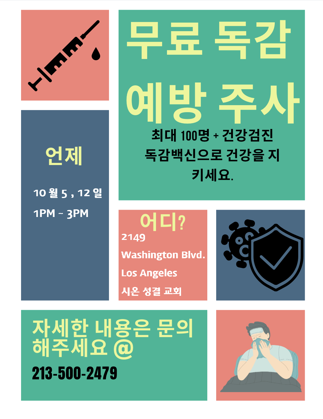 무료 독감 예방 접종_ 10월 5일, 12일 오후 1-3시 __ 시온성결교회/ POCO foundation