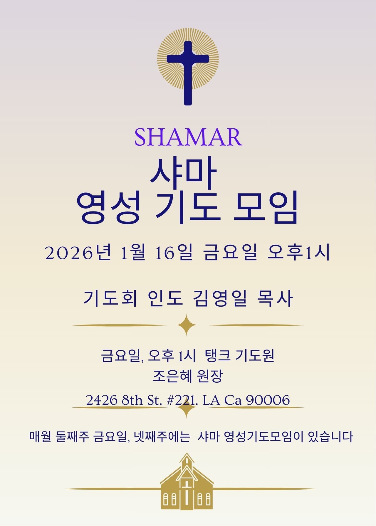 샤마 영성 기도모임은 매달 둘째 주와 넷째 주,
