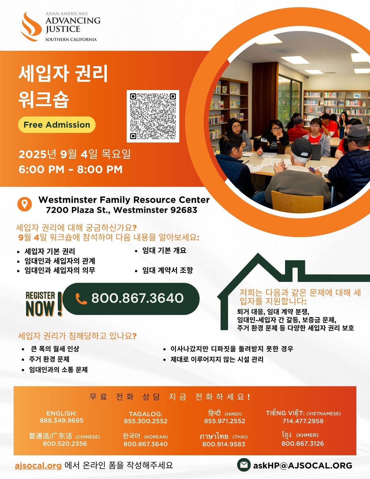 RSVP 는 전화 800.867.3640 또는 온라인으로 https://ajsocal.org/legal-victim-help/in-language-helpline-form-korean/