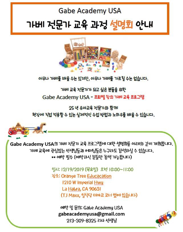 '가베 전문가 교육과정' 오렌지 카운티 3기를 모집하고 있습니다.