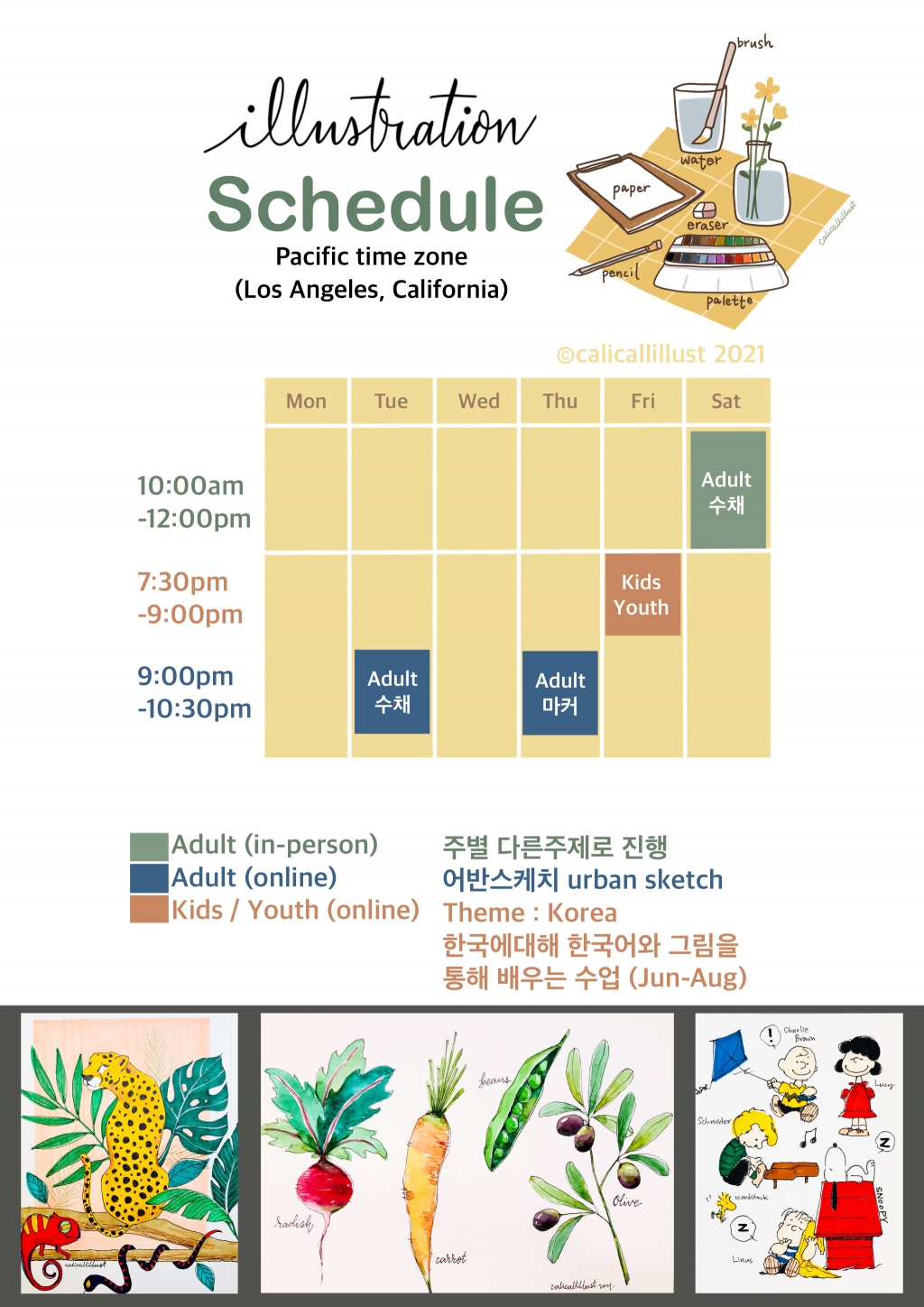 그리고 Adult / Youth and Kids 클래스를 온라인으로 진행하고있습니다.