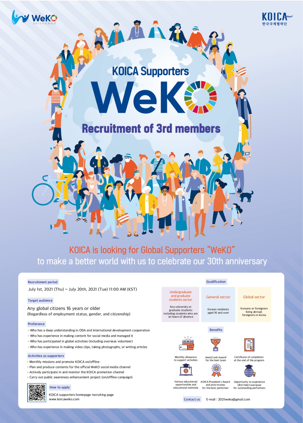 코이카 30주년과 함께 더 나은 세상을 만들어갈 글로벌 서포터즈 ‘WeKO’를 기다립니다.