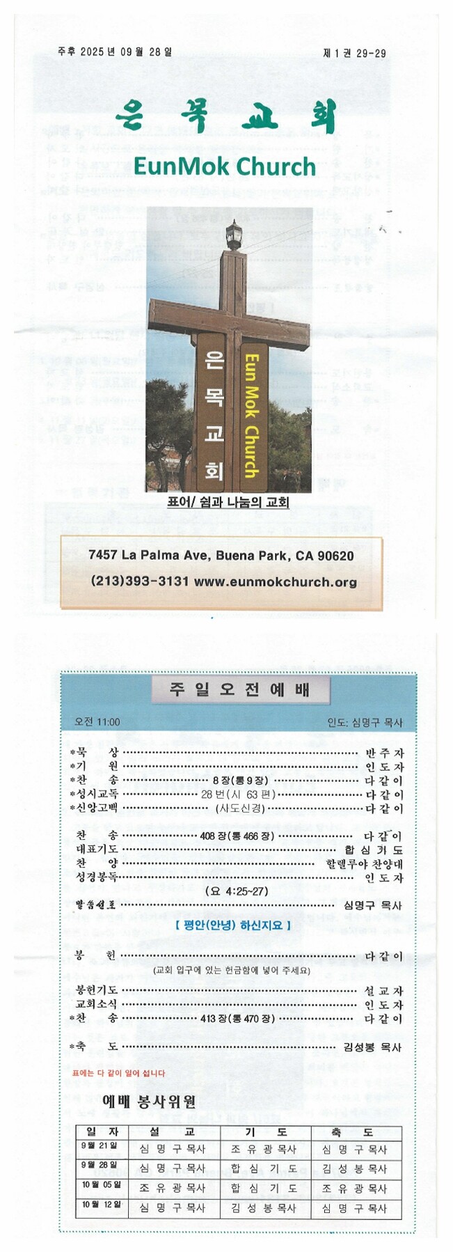 교회 전화번호 : 213 393 3131