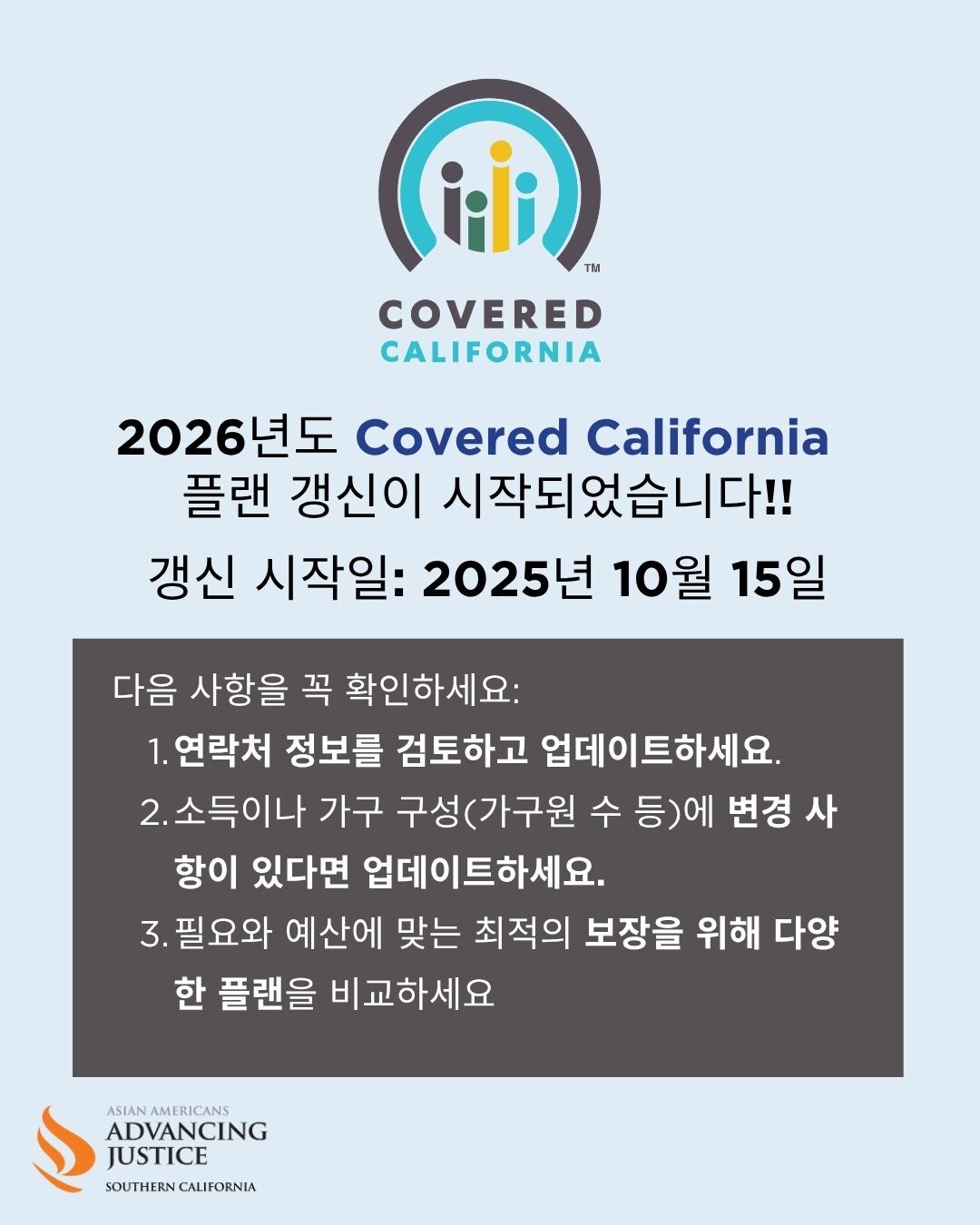 2026년도 Covered California 플랜 갱신이 시작되었습니다.
