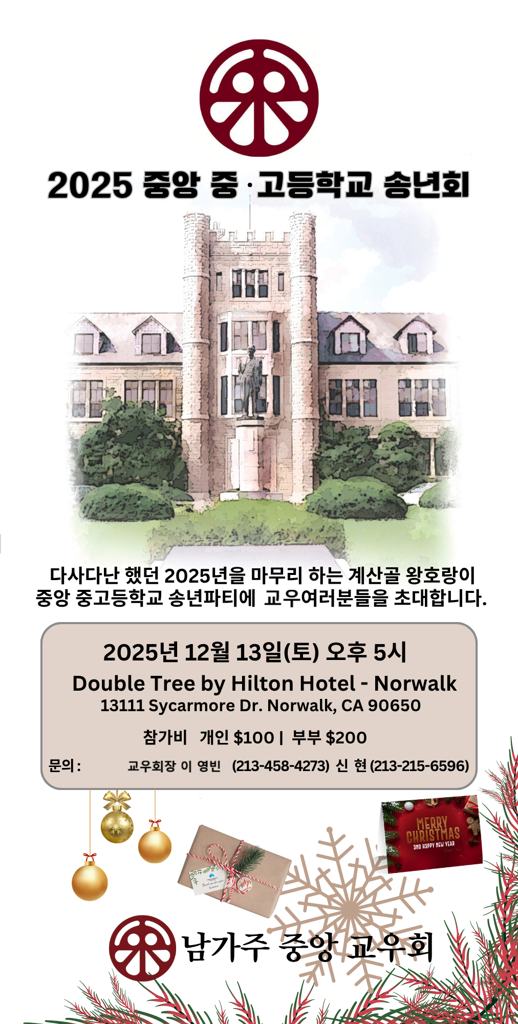 중앙 중고등학교 송년파티에 교우 여러분을 초대합니다.