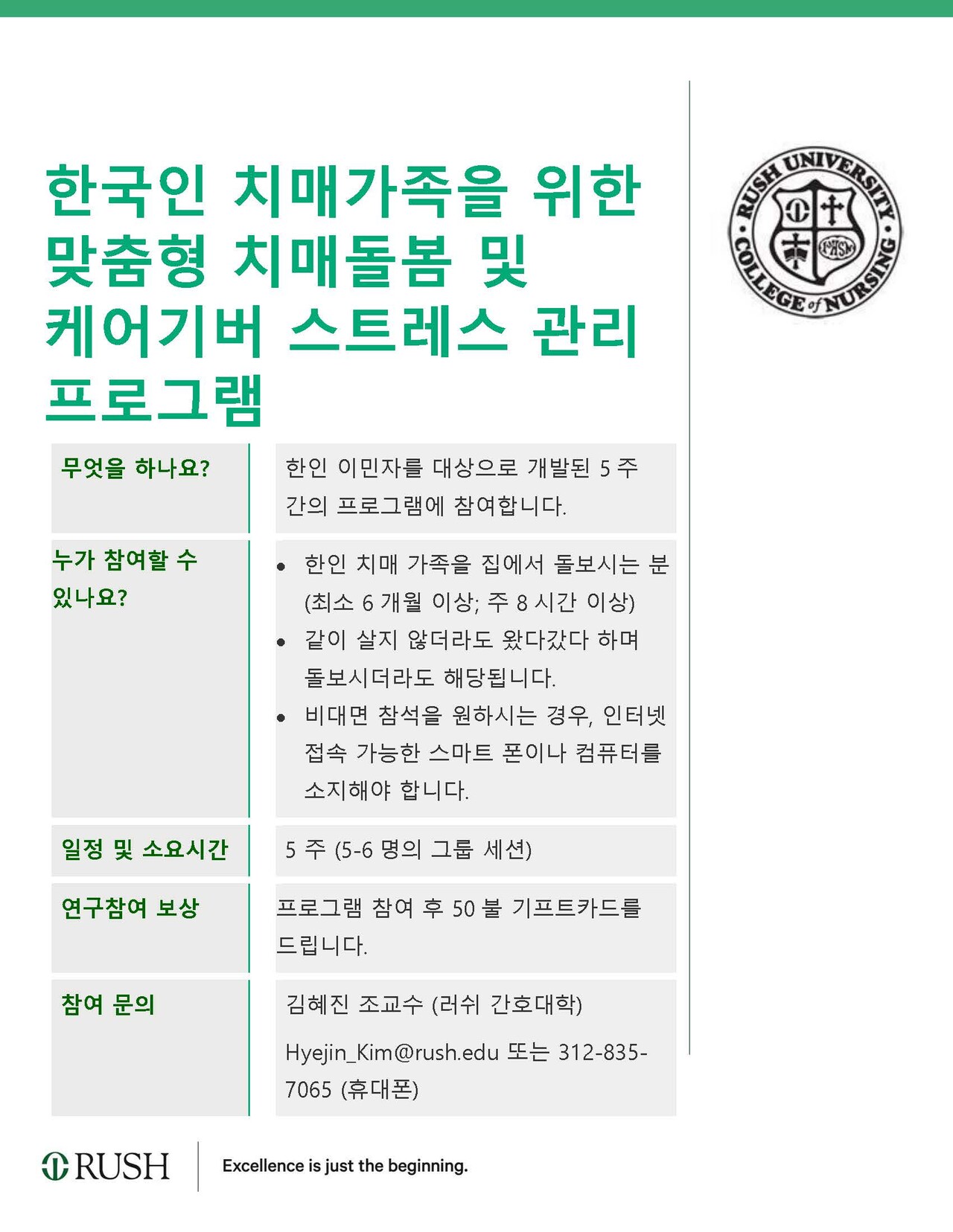 시카고 Rush University에서 치매 가족을 돌보는 한인 이민자를 위한 온라인 지원 프로그램 참여자를 모집합니다.