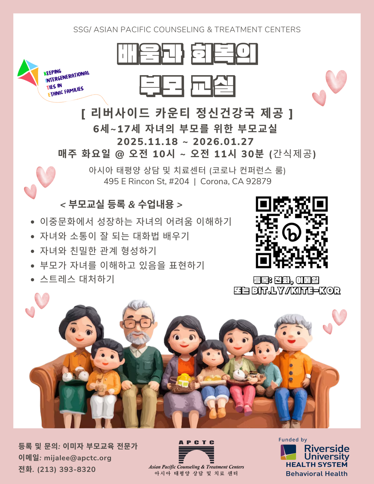* 리버사이드 카운티 정신건강국 제공 무료 프로그램 (교재 및 간식 포함)