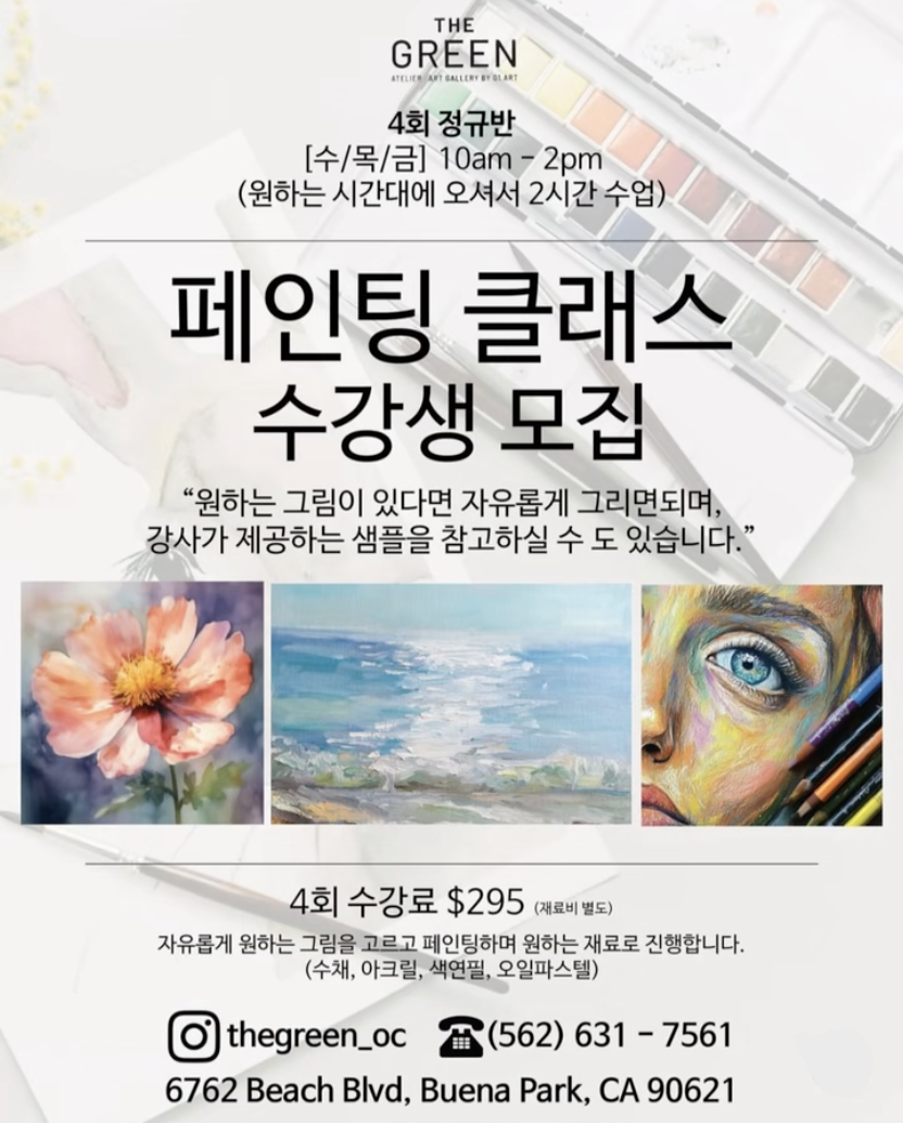 링크 주소 www.instagram.com/thegreen_oc/ 에서 DM 또는 아트 스튜디오 전화 562-631-7561로 부탁드려요.