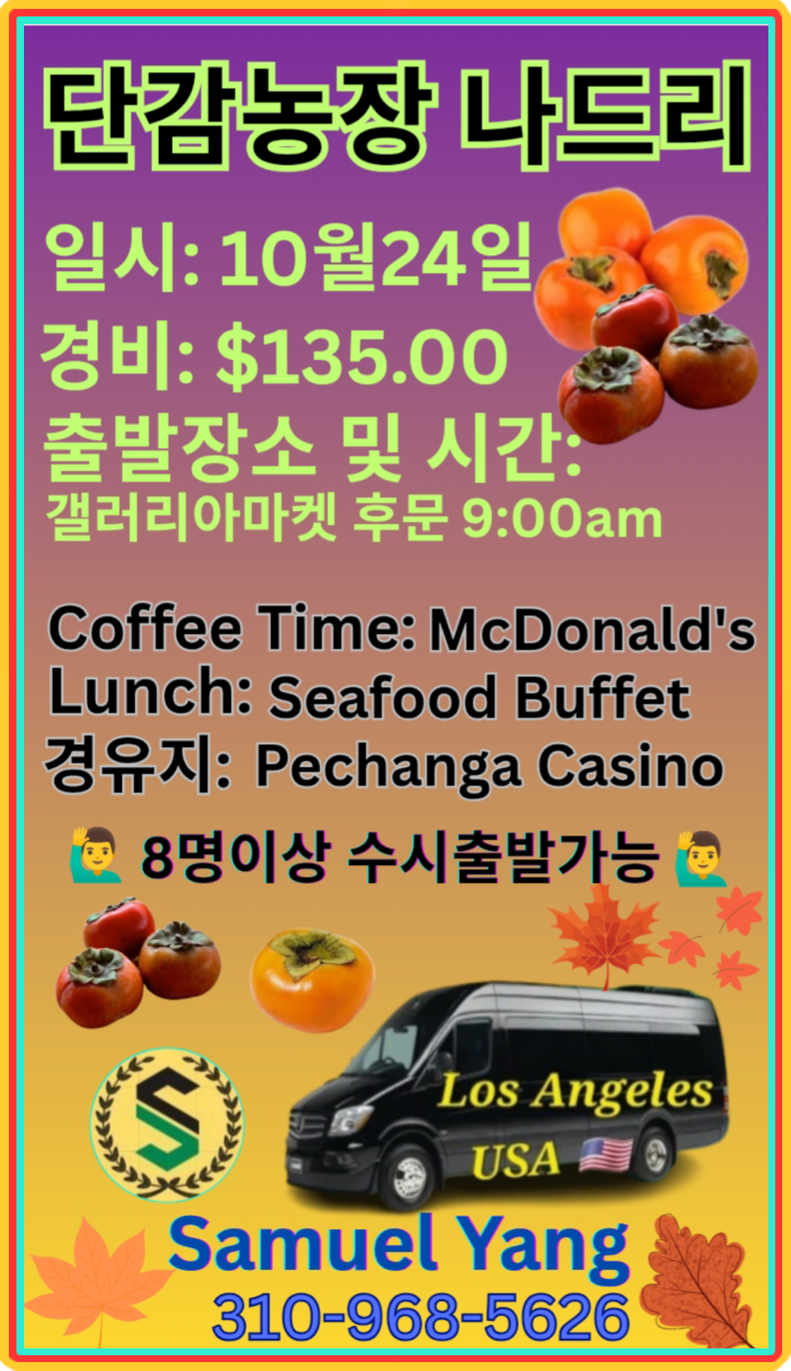 작은 인원으로 엘에 부근 당일로 갔다 옵니다 저렴하고 점심 제공하고 편하게 리무진으로 모십니다