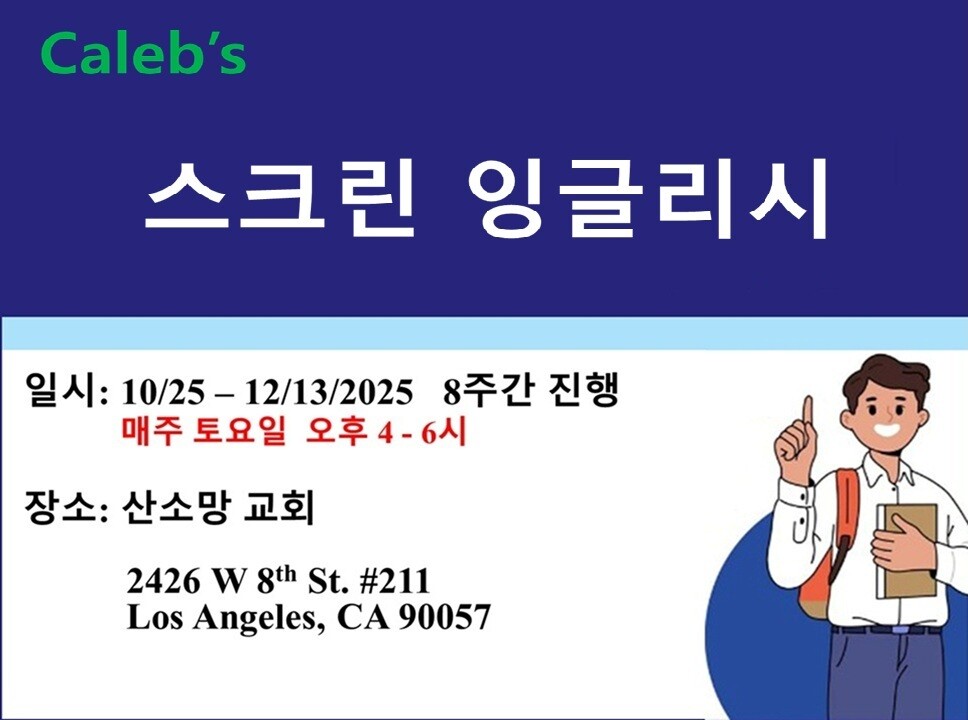 코리아타운 시니어센터에서 "스크린 영어" 를 진행하고 있는 갈렙입니다.