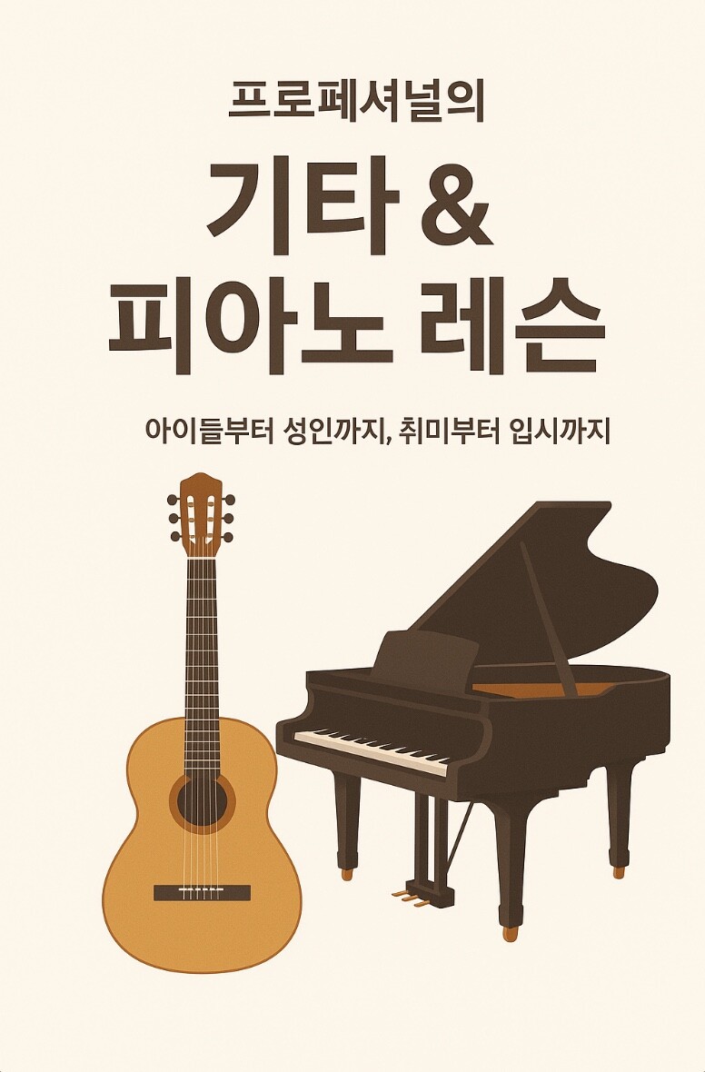 안녕하세요, 한인타운과 다운타운에서 기타와 피아노 레슨을 위한 학생들을 모집하기 위해 이렇게 글을 씁니다.