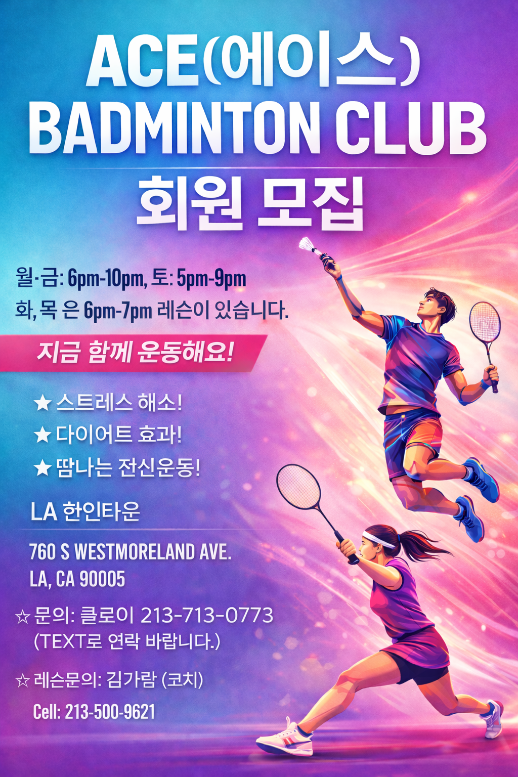 LA 배드민턴(매일저녁 운동하세요!!!)