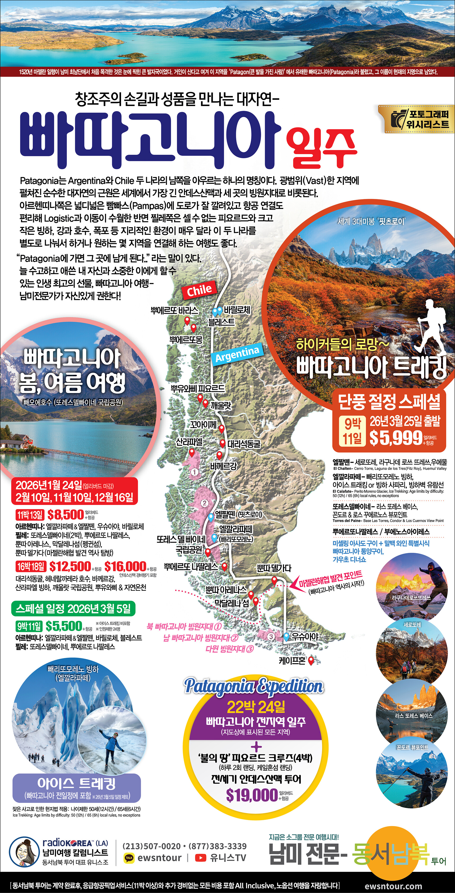DISCLAIMER: 이 글은 해당 여행사에서 직접 작성한 글로 내용에 대한 모든 책임은 작성자에게 있으며, 이 내용을 본 후 결정한 판단에 대한 책임은 게시물을 본 이용자 본인에게 있습니다. 라디오코리아는 이 글에 대한 내용을 보증하지 않으며, 이 정보를 사용하여 발생하는 결과에 대하여 어떠한 책임도 지지 않습니다. 라디오코리아의 모든 게시물에 대해 게시자 동의없이 게시물의 전부 또는 일부를 수정 · 복제 · 배포 · 전송 등의 행위는 게시자의 권리를 침해하는 것으로 원칙적으로 금합니다. 이를 무시하고 무단으로 수정 · 복제 · 배포 · 전송하는 경우 저작재산권 침해의 이유로 법적조치를 통해 민, 형사상의 책임을 물을 수 있습니다. This listing is posted by a travel agency and all the responsibility for the contents lies with a travel agency. The user is responsible for the judgments made after viewing the contents. Radio Korea does not endorse the contents of this article and assumes no responsibility got the consequences of using the information. In principle, all posts in Radio Korea are prohibited from modifying, copying, distributing, and transmitting all or part of the posts without the consent of the publisher. Any modification, duplication, distribution, or transmission without prior permission can subject you to civil and criminal liability.