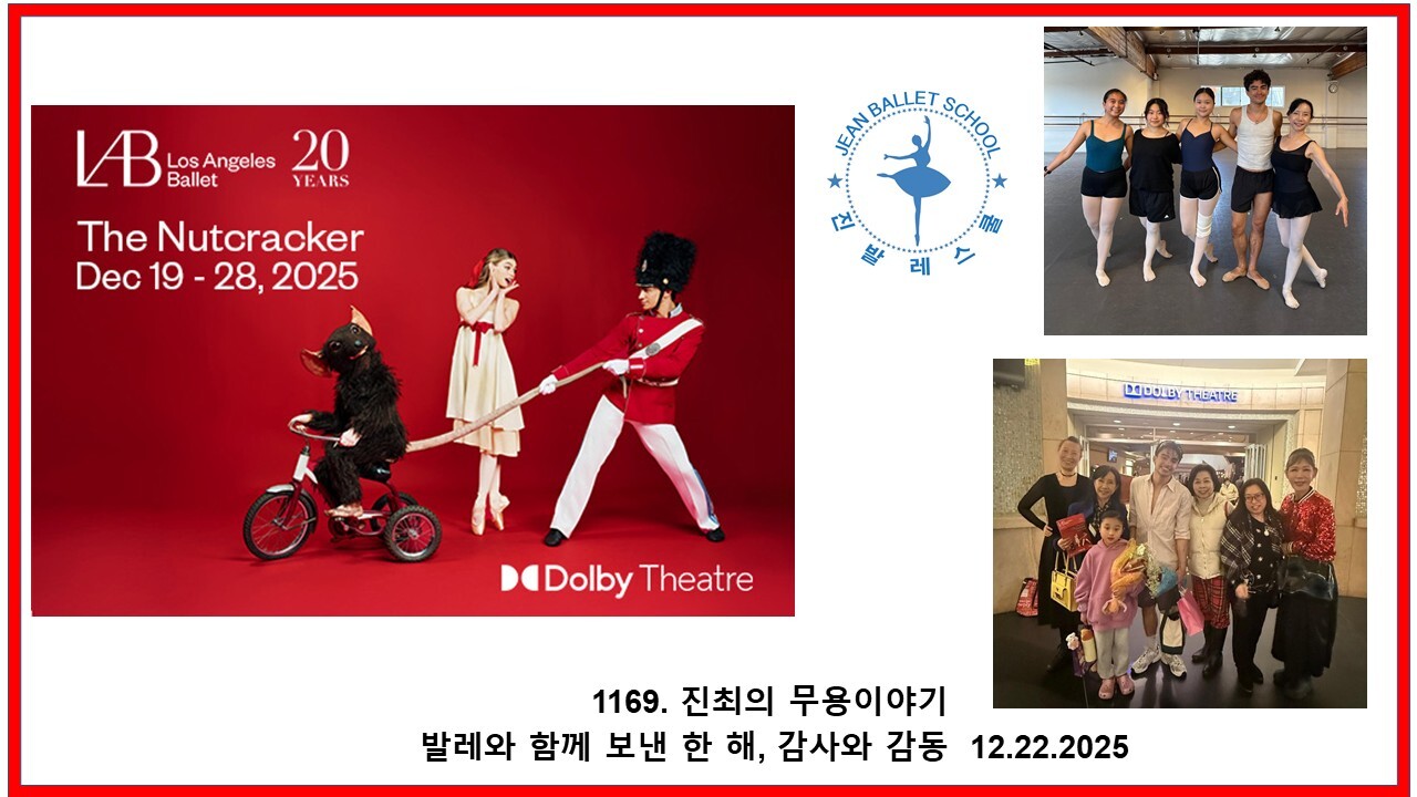이번 공연은 LA 발레단의 무대였고, 장소는 돌비 시어터였다. 무엇보다 공연이 특별했던 이유는 우리 진발레스쿨에서 주니어·어린이·성인 클래스를 가르치는 제이콥 발레 선생님, 그리고 연습실에서 성실하게 연습하던 학생 에린이 무대에 함께 있었기 때문이다.