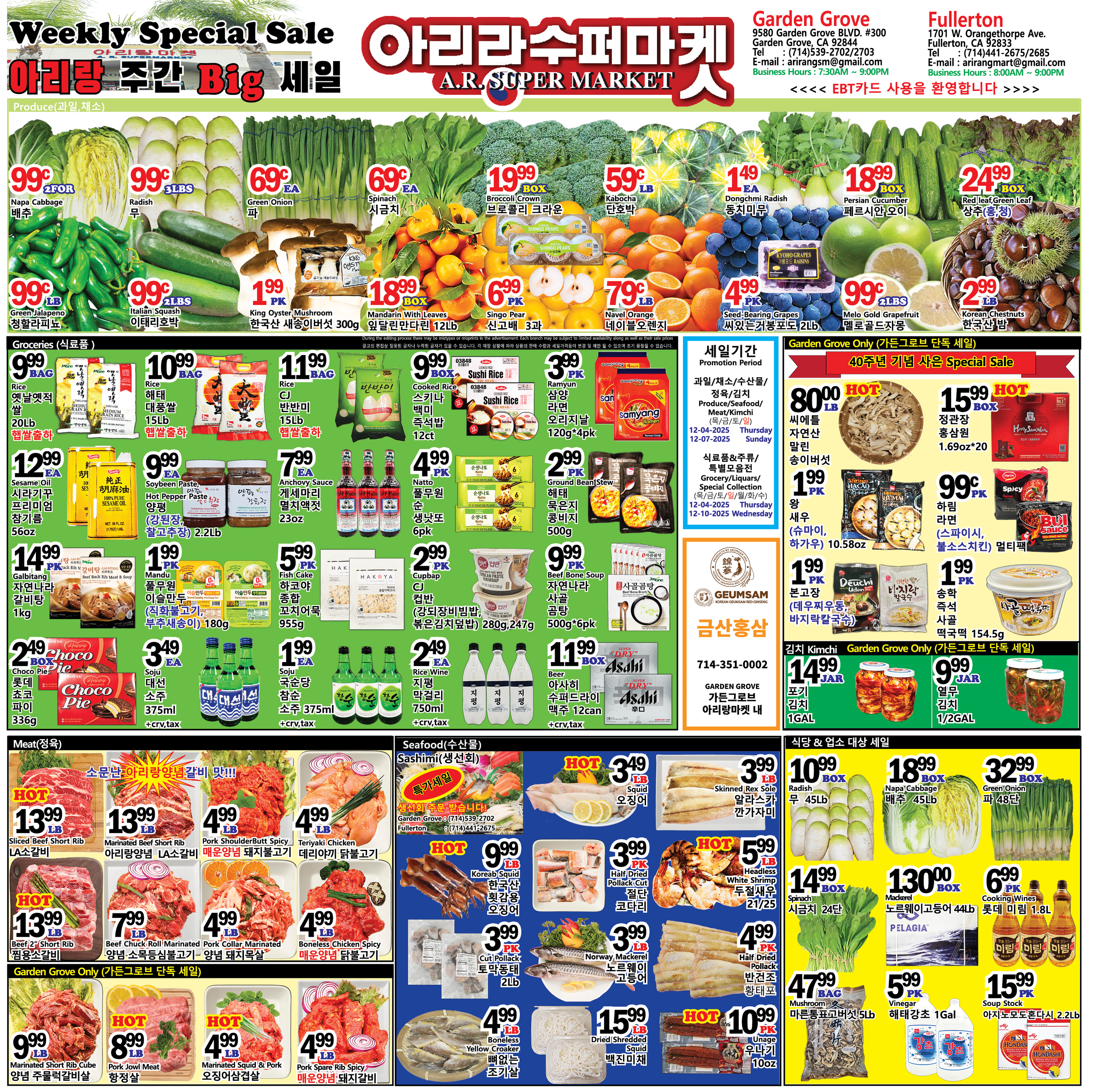 2025년 12월 1째주 정기세일품목(가든그로브,플러튼)