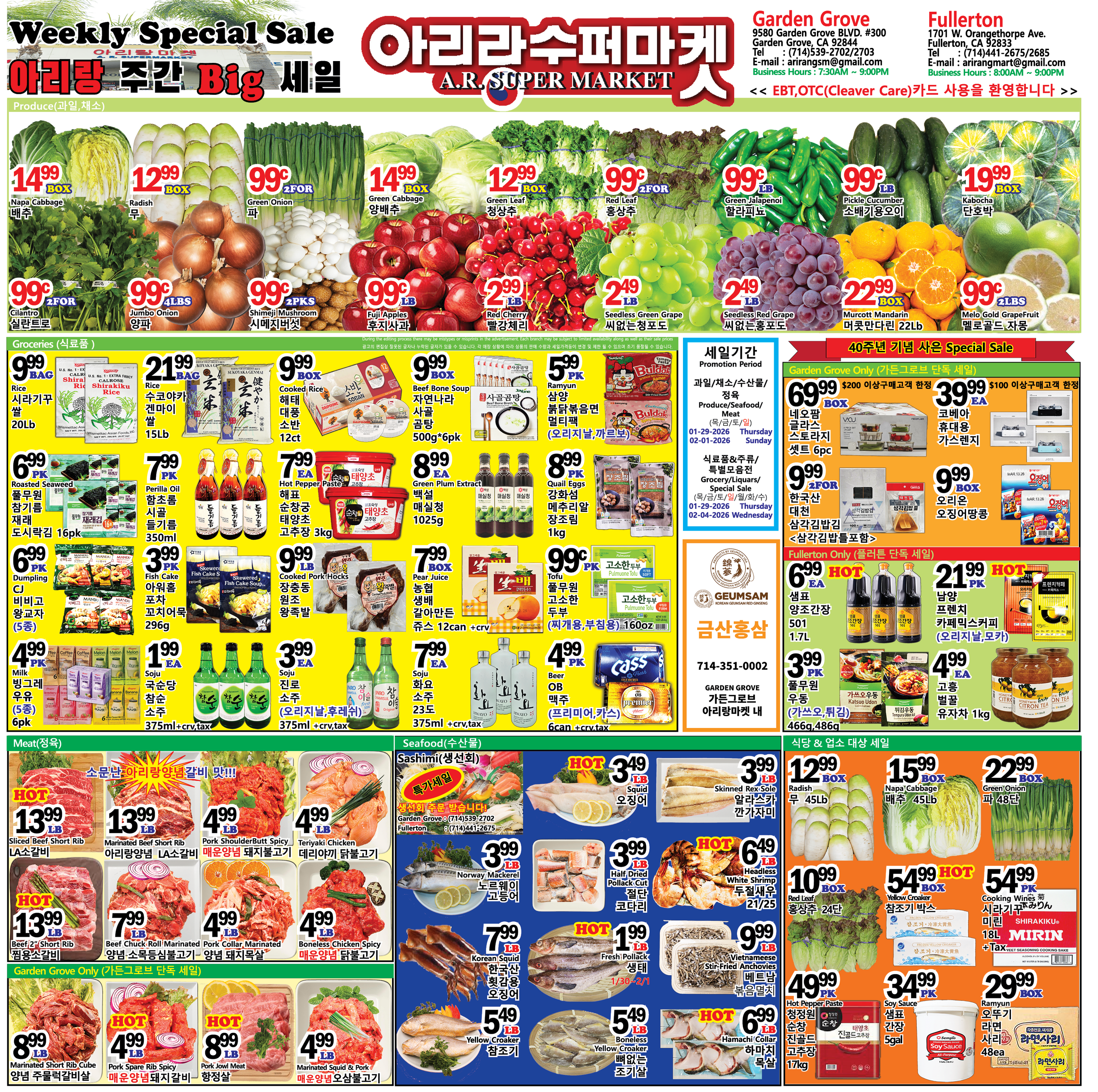 • 더 많은 정보를 원하시면 아래에 있는 아리랑수퍼마켓 세일정보 홈페이지를 방문하시기 바랍니니다.
