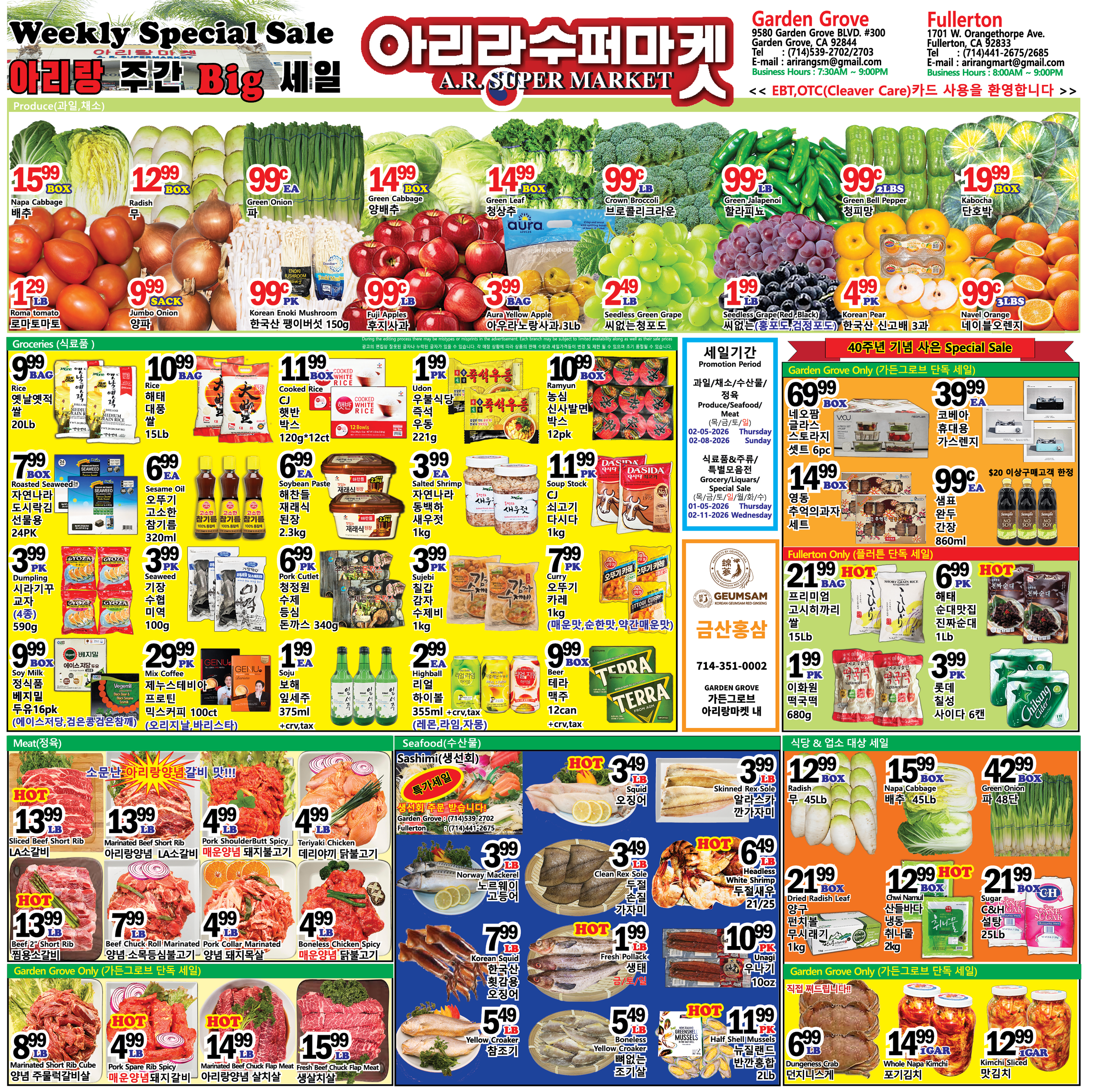 • 더 많은 정보를 원하시면 아래에 있는 아리랑수퍼마켓 세일정보 홈페이지를 방문하시기 바랍니니다.
