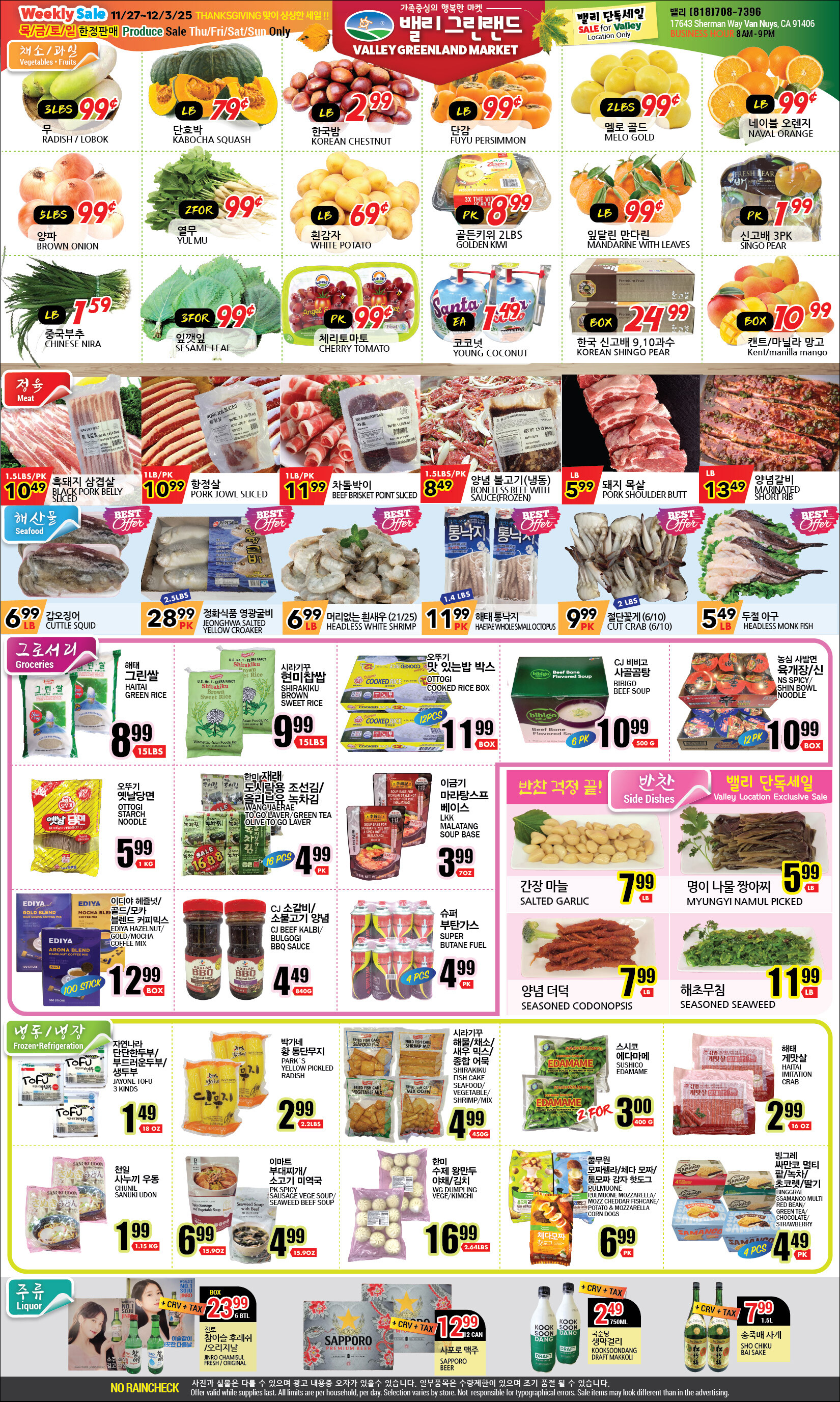 밸리 단독 그린랜드 마켓 Thanksgiving 맞이 그 싱싱한 세일 !!