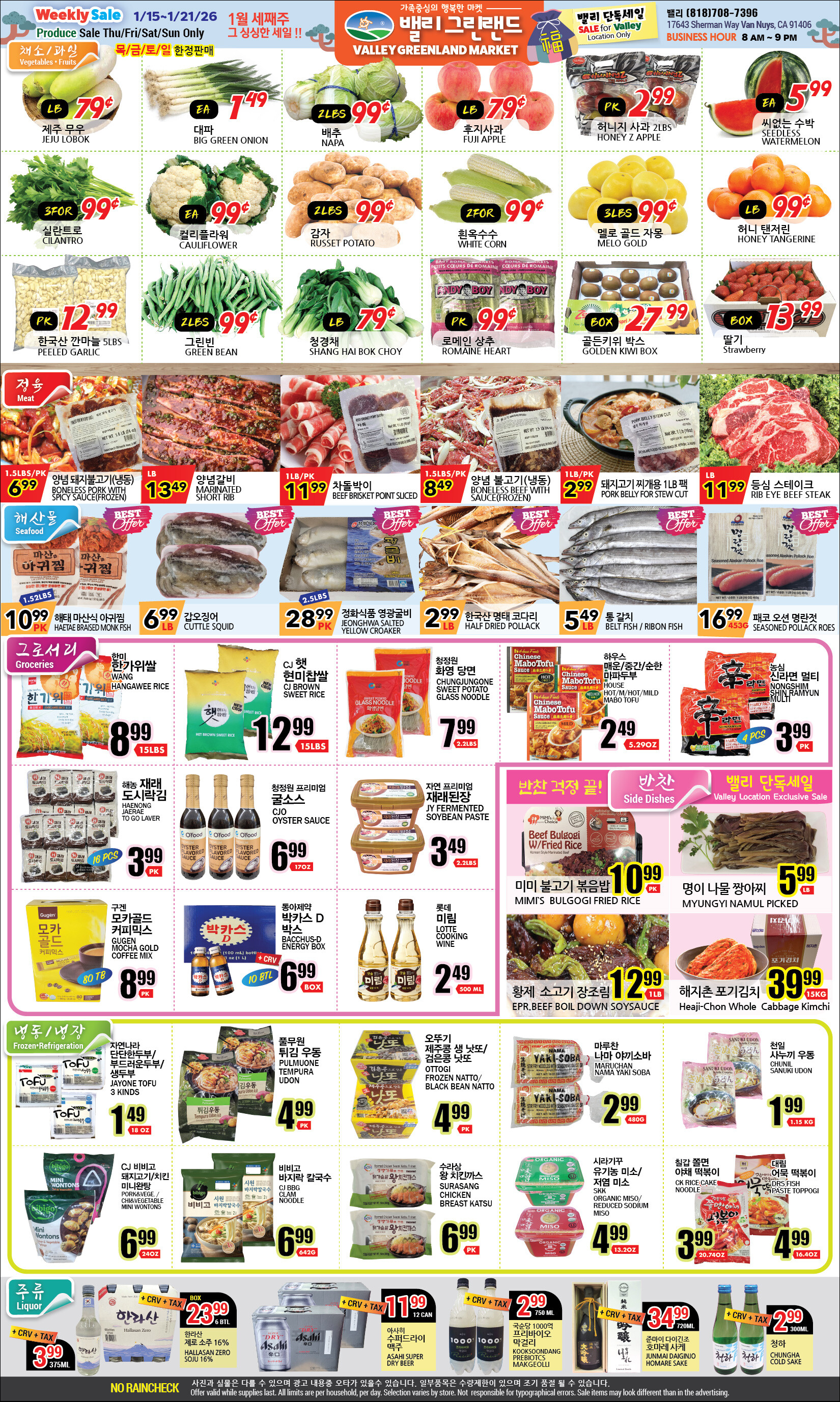 밸리 단독 그린랜드 마켓 1월 세째 주 그 싱싱한 세일 !!