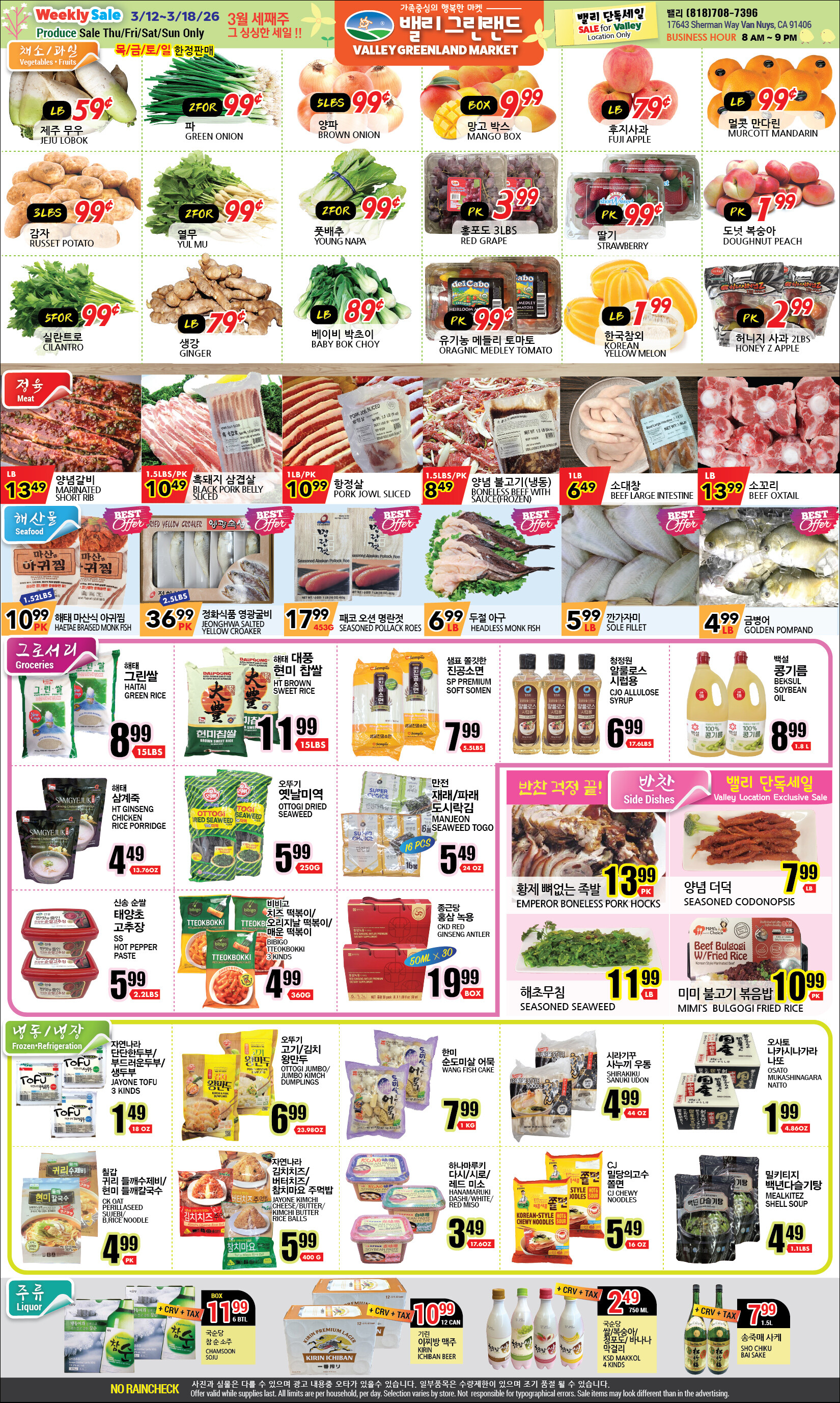 밸리 단독 그린랜드 마켓 3월 세째 주 그 싱싱한 세일 !!