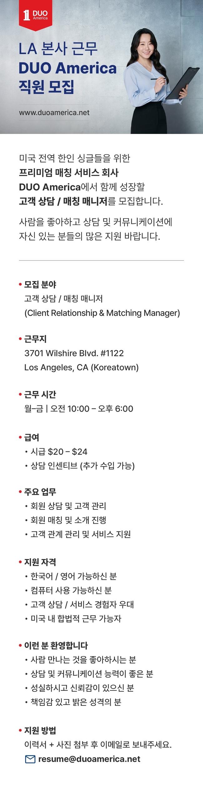 DISCLAIMER: 라디오코리아는 이 광고에 대한 내용을 보증하지 않으며, 이 광고와 관련하여 발생하는 모든 결과에 대하여 어떠한 책임도 지지 않습니다. 이 광고를 본 후 결정한 판단에 대한 책임은 광고를 본 이용자 본인에게 있습니다. 라디오코리아의 모든 게시물에 대해 게시자 동의없이 게시물의 전부 또는 일부를 수정 · 복제 · 배포 · 전송 등의 행위는 게시자의 권리를 침해하는 것으로 원칙적으로 금합니다. 이를 무시하고 무단으로 수정 · 복제 · 배포 · 전송하는 경우 저작재산권 침해의 이유로 법적조치를 통해 민, 형사상의 책임을 물을 수 있습니다. In principle, all posts in Radio Korea are prohibited from modifying, copying, distributing, and transmitting all or part of the posts without the consent of the publisher. Any modification, duplication, distribution, or transmission without prior permission can subject you to civil and criminal liability.