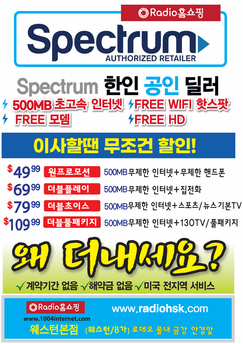 희소식^^ 하나 : 타임워너 스펙트럼 인터넷과 TV, 가정용/상업용 신청, 요금변경 상담환영