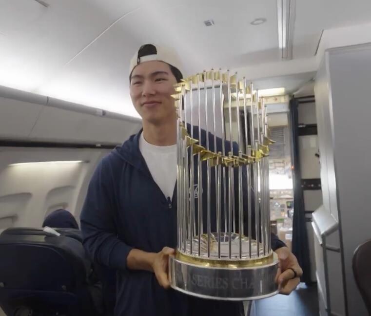 다저스 김혜성, 우승 트로피 안고 미소…4일 카퍼레이드 참가