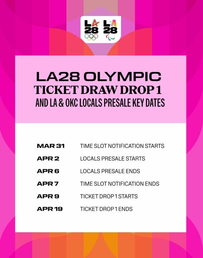 2028년 LA올림픽 티켓 판매가 내일(2일)부터 시작된다.LA올림픽 조직위원회 LA28은 사전 등록한 일부 신청자를 대상으로 1차 판매를 진행한다고 밝혔다.이번 1차 판매는 무작위 추첨을 통해 선정된 남가주와 오클라호마시티 지역 신청자들을 대상으로 이뤄지며, 판매 기…
