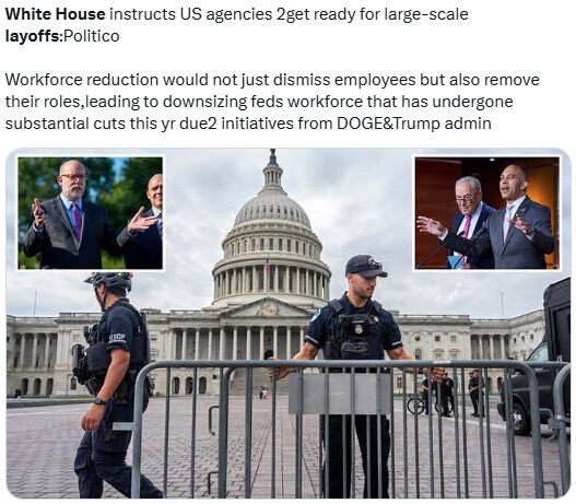 백악관 “셧다운 협상 진전 없으면 대량 해고 시작”연방정부의 부분 셧다운(일시적 업무정지)이 오늘(10월8일) 수요일로 8일째로 접어든 가운데, 백악관이 민주당과의 협상에서 진전이 일어나지 않을 경우 연방 공무원에 대한 대량 해고(Mass …로컬|10.09.2025 07:58|라디오코리아